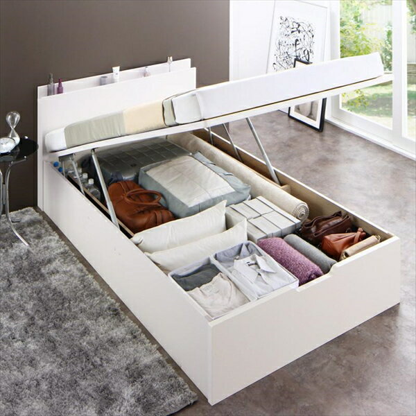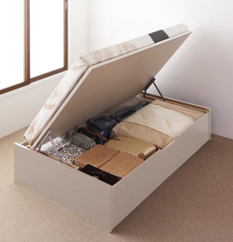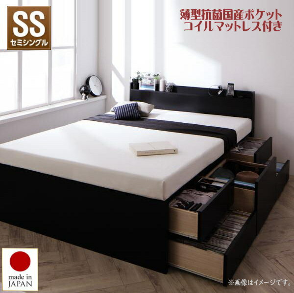小さな部屋に合うショート丈収納ベッド Odette オデット 薄型抗菌国産ポケットコイルマットレス付き セミシングル ショート丈 深さグランド