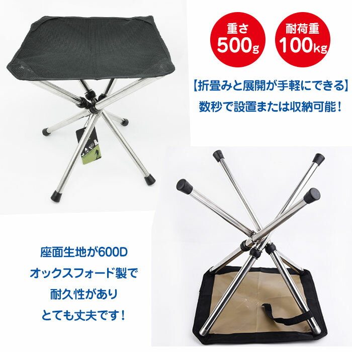 アウトドアチェア 折畳み式 わずか500g コンパクト 軽量 キャリーバッグ付属 ハイキング キャンプ BBQ 釣り 収納ポーチ付 アウトドア ◇HSK-4JD
