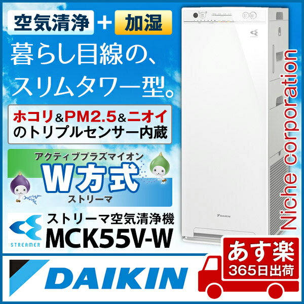 ダイキン 加湿ストリーマ空気清浄機 ホワイト[MCK55V-W]様々な内装の壁や床に馴染みやすい直線を基調とした従来からのデザインを引き継ぎながら、自分だけの落ち着いた時間を過ごせる個室空間づくりなど、より豊かな住まい方の実現に貢献します。